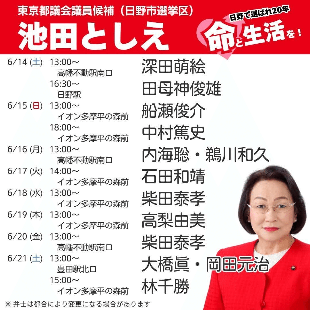 池田としえさんが都議会議員選挙に立候補するという。