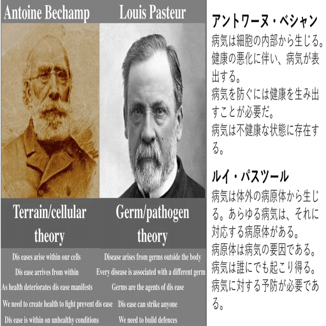いまわの懺悔だろうか、パスツールは死ぬ間際に、「病気は微生物のせいではない。本当に大事なのはテランだった」と認めたという話があるが、病原体病因説が支配的な現代において、こんな小話に耳を傾ける人はいない。