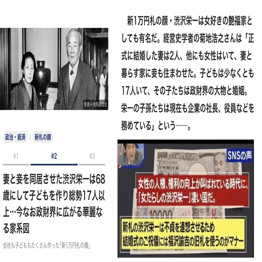 明治の元勲には妾が何人もいた。たとえば、新一万円札の顔になった渋沢栄一には複数の妾がいて、産ませた子供は少なくとも17人いたという。