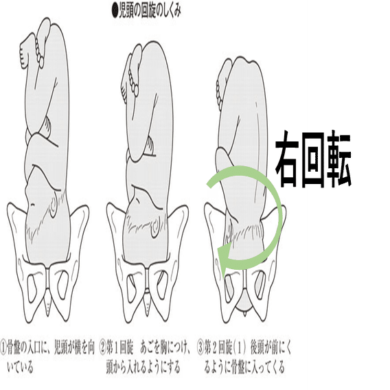 母胎内で赤ちゃんは右回転をしながら骨盤を降りてくる。