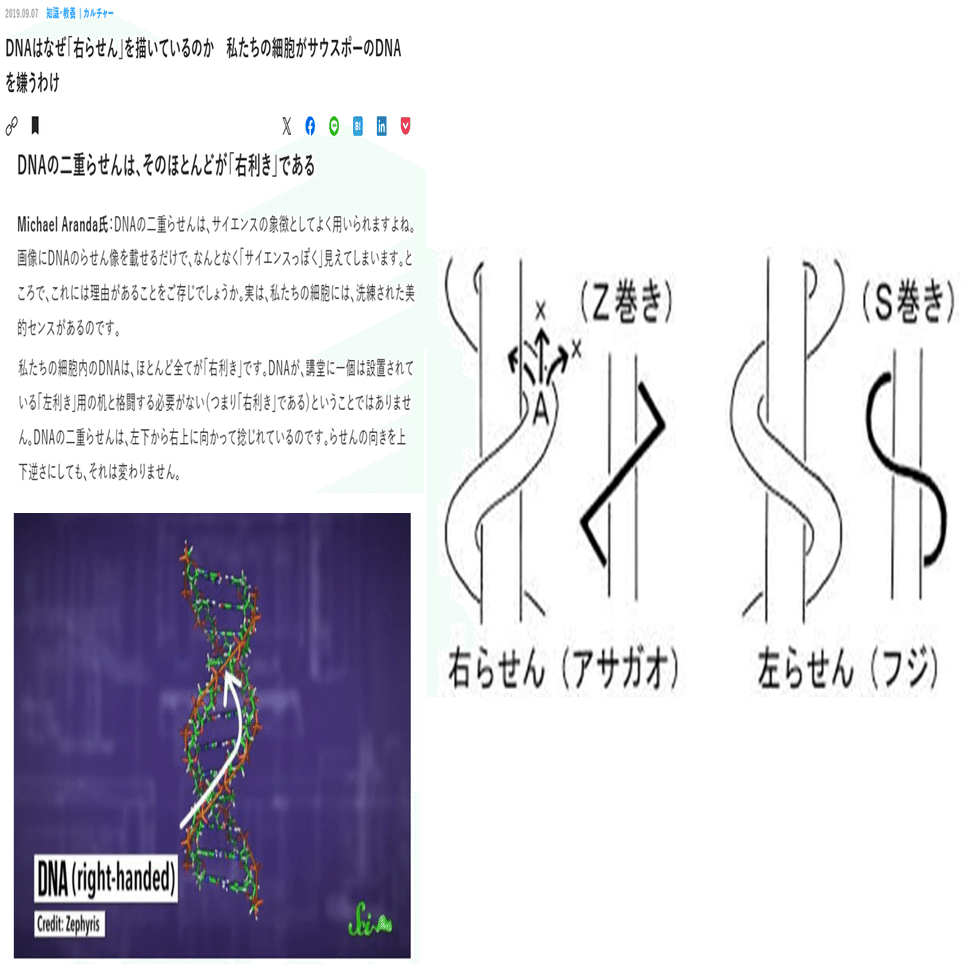そもそも我々の遺伝子DNAも右螺旋構造をとっているし、