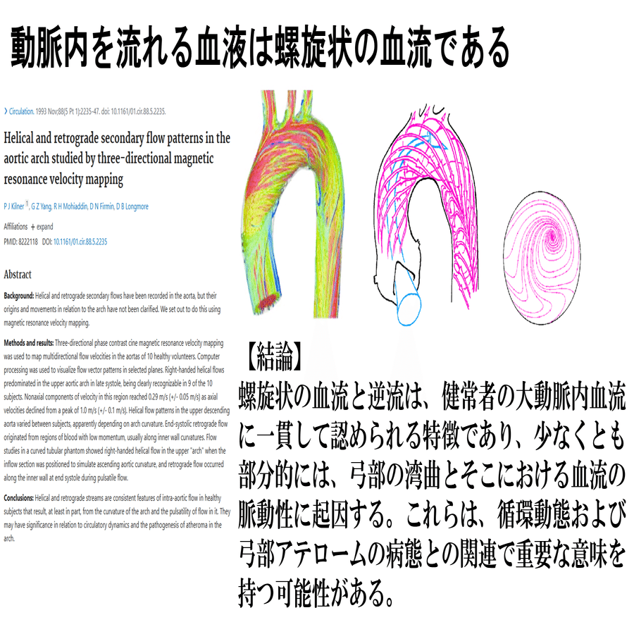 さらにいうと、血液は血管内を流れるとき、右回転のらせんを描いている。