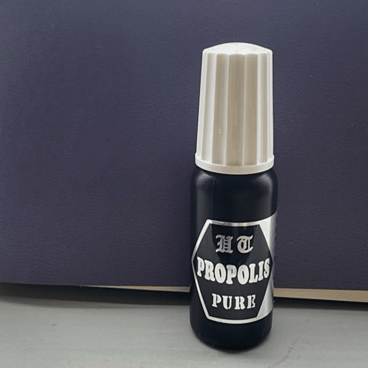 プロポリスも、慣れない人は1滴でいい。1滴をなめて、しばらく口に含んでおくといい。