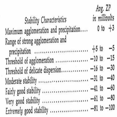 ゼータポテンシャルを乱す分子、あるいは安定させる分子を並べると、以下のようになる。