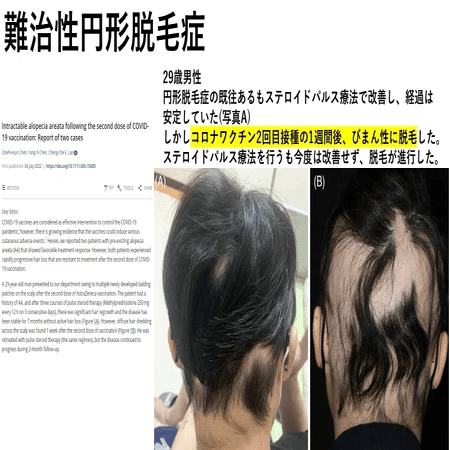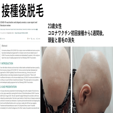 たとえば、抗癌剤で脱毛が起こることは有名ですが、コロナワクチンで脱毛が起こることも以前の記事で紹介しました。