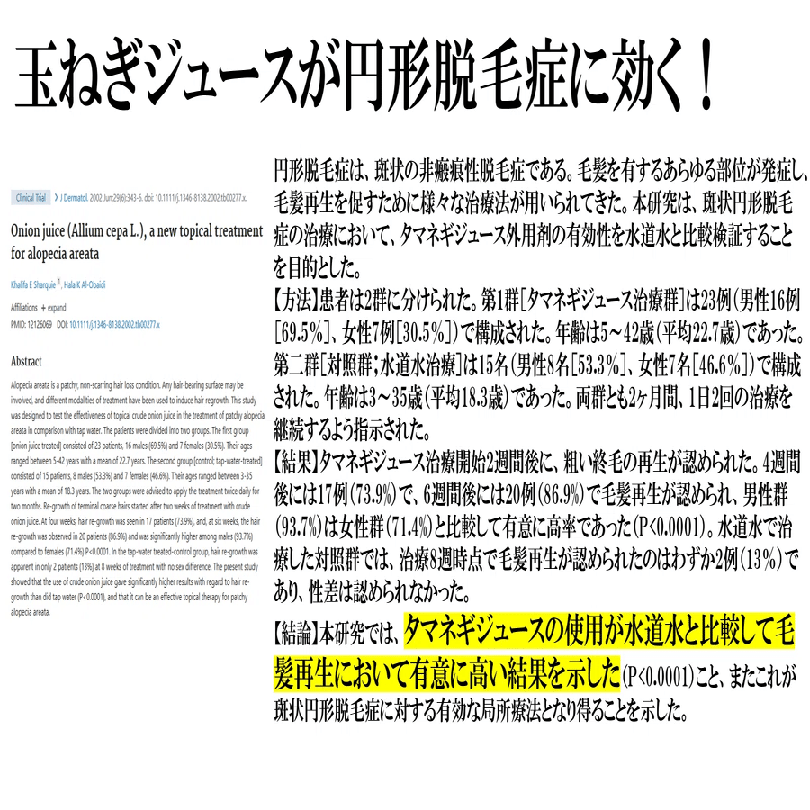昔から民間療法的に、「玉ねぎがハゲに効く」と言われていました。その真偽を科学的に試してみたのが、以下の論文です。