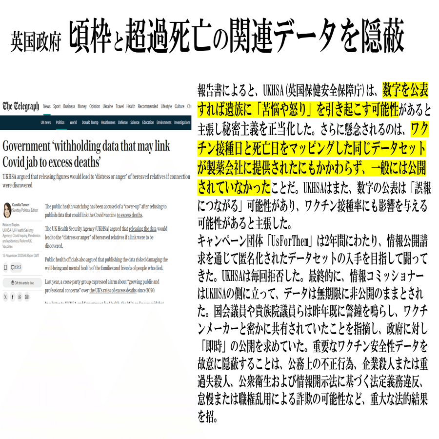 英国政府は、すでにデータ分析からコロナワクチンと超過死亡の関係について認識していましたが、この事実を意図的に隠蔽していました。