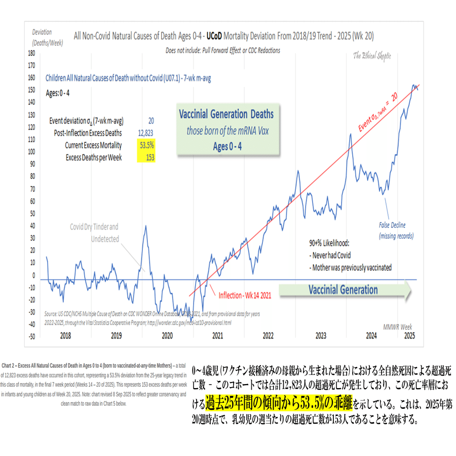 すでに、2021年のワクチン接種開始から4年が経ちました。つまり、2021年にワクチンを打ったお母さんから生まれた子供は、すでに4歳になっています。この4歳児の死亡率はどうなっているか。